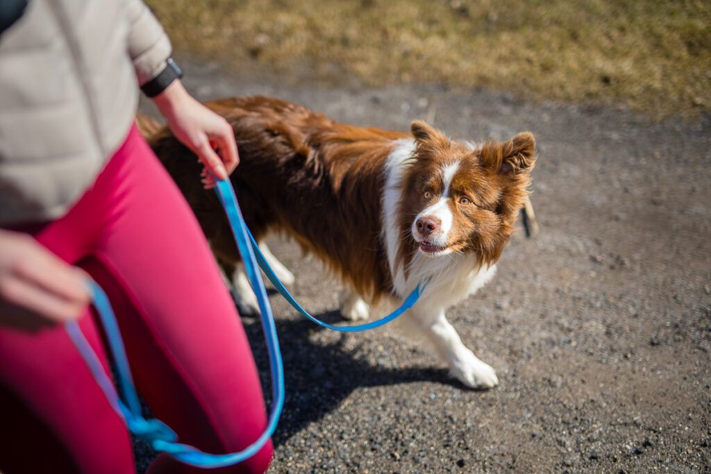 Než se do tréninku pustíte, je dobré si ujasnit, o jakou chůzi vlastně jde. My se zaměříme na tzv. provozní chůzi u nohy – tedy běžnou chůzi, při které pes zůstává poblíž vás, ať už po pravé nebo levé straně. Nejde o zkouškovou přesnost, kdy pes drží hlavu nahoře a šlape přesně podle vašeho kroku. Jaký je přesný rozdíl mezi chůzí sportovní/závnodní a provozní jsme více rozepsali tady. Cílem je, aby chlupáč uměl jít klidně vedle vás, sledoval vás a netáhl. Ideální je, když umí chodit po obou stranách, protože se to může hodit – třeba když potřebujete psa přehodit na opačnou stranu při míjení jiného hafana nebo kočárku.