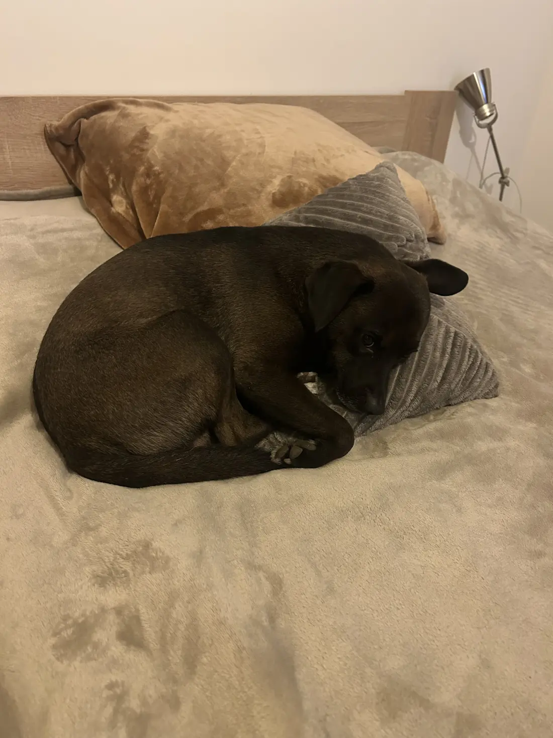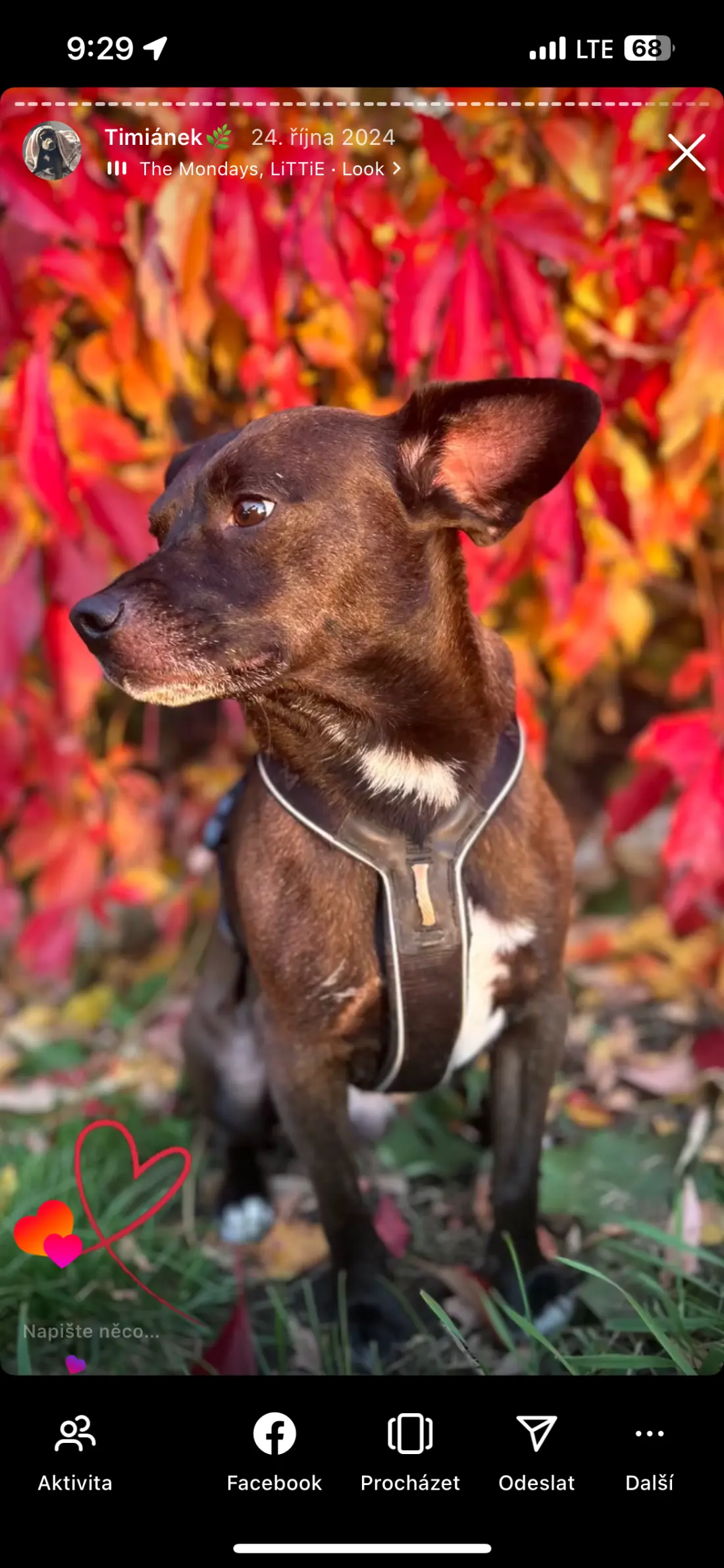 Plachý, má strach z lidí, hlavně mužů a dětí. Bojí se ale nekouše. Pokud se ztratil zřejmě něco lovil a moc mu chybí panička a on jí🥹