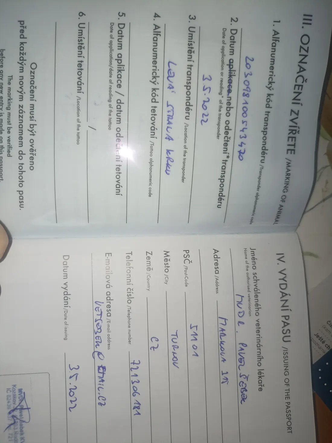 Zde naleznete všechny informace o zvířeti a a jeho majiteli / majitelce.