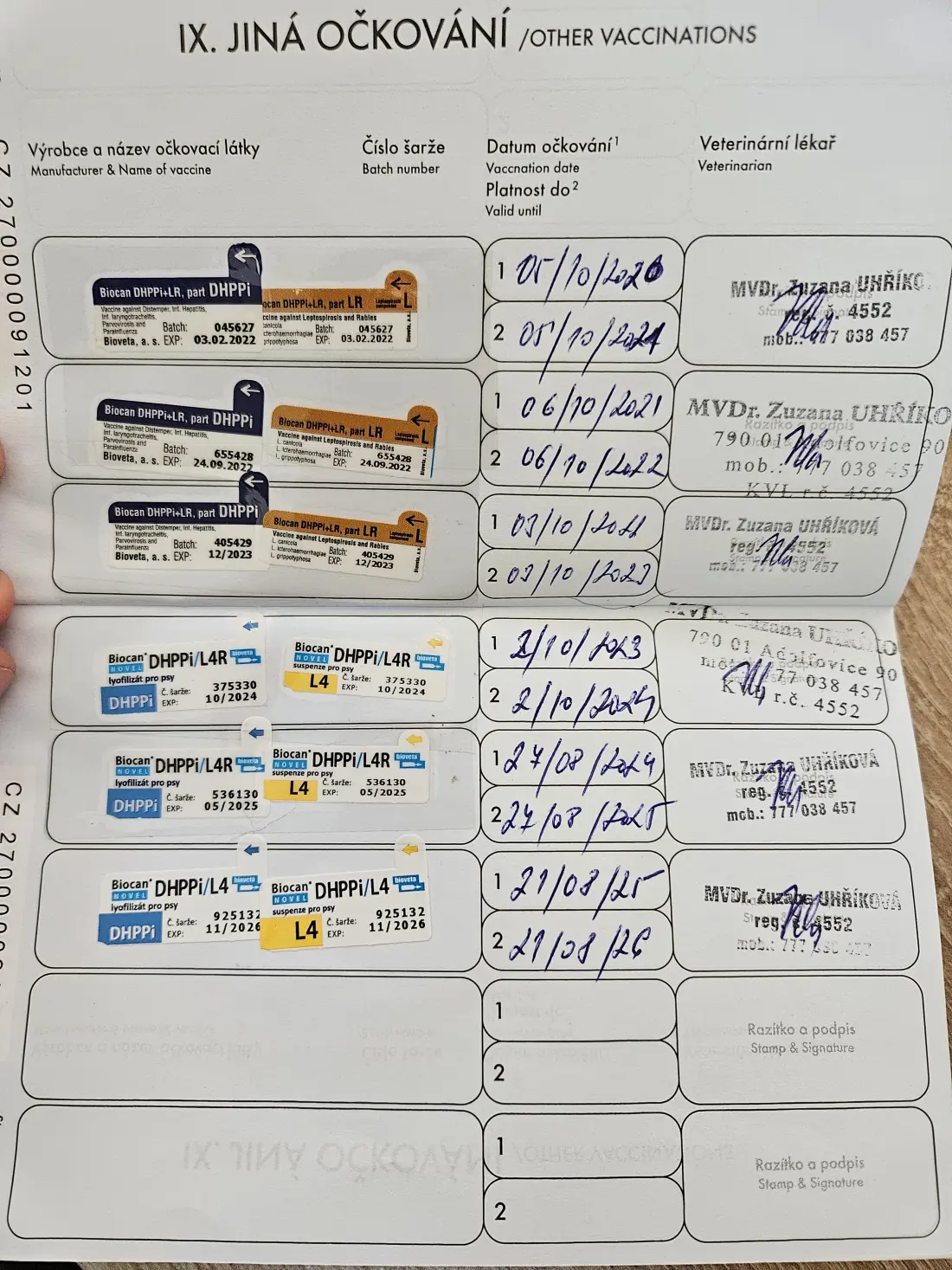 Posl. očkování proti vzteklině: 21. 8. 2025