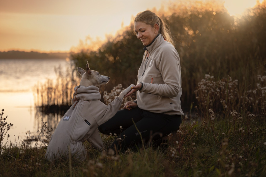 Psí kombinéza, ale ne ledajaká – Trail quest fleece overall je měkký, hřejivý a přitom neuvěřitelně pohodlný obleček. Celé tělo psa zahalí od krku až po kotníky a díky kvalitnímu Polartec® fleecu se v ní bude cítit jako v teplé dece, kterou si může vzít s sebou na výlet. Chytré panely z prodyšného grid fleecu okolo hrudníku a na nohách zajistí, že se pes nezapaří ani při delším běhání, ale zůstane hezky v teple. Díky pěti nastavitelným bodům a pružným manžetám padne overal jako šitý na míru – ať už jde o drobného chrtíka nebo statného ohraře. Praktické zapínání na YKK® zip a patentku usnadní oblékání i svlékání, což oceníte nejen na túrách, ale i při běžných procházkách. Reflexní prvky 3M™ se postarají o to, aby byl pes vidět i za šera. Trail quest overal je skvělou volbou pro každého, kdo chce mít jistotu, že jeho parťák bude v zimě v teple a pohodlí – ať už při dobrodružstvích v horách, kempování nebo jen na cestě parkem.