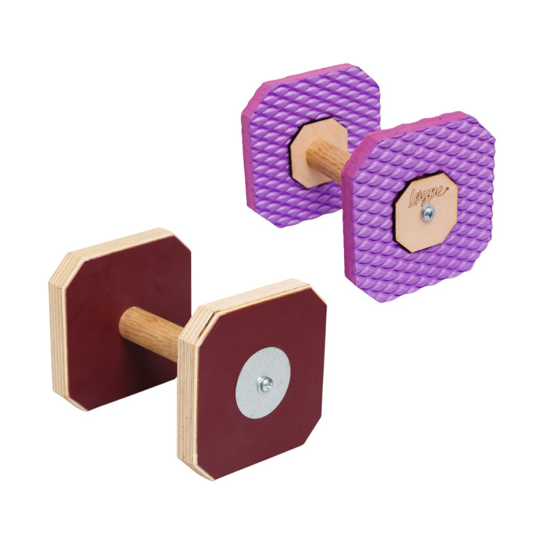 Obě mají upravenou délku středové tyčky na 10 cm, u klasické činky je to 13.5 cm. Liší se právě bočnicemi, které jsou buď z měkké pěny, anebo z dřevěné překližky. Pěnová činka se hodí pro začátečníky, protože je lehčí a nevyžaduje tolik zkušeností. Také to psa nebolí, když činku omylem upustí na tlapku. Zároveň při dopadu na podlahu nedělá hluk, takže se hodí i na domácí trénink. Dřevěná činka je pak vhodná pro přípravu na zkoušky.
