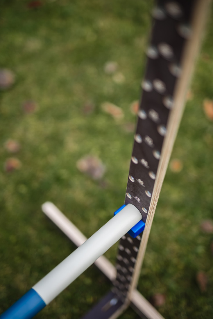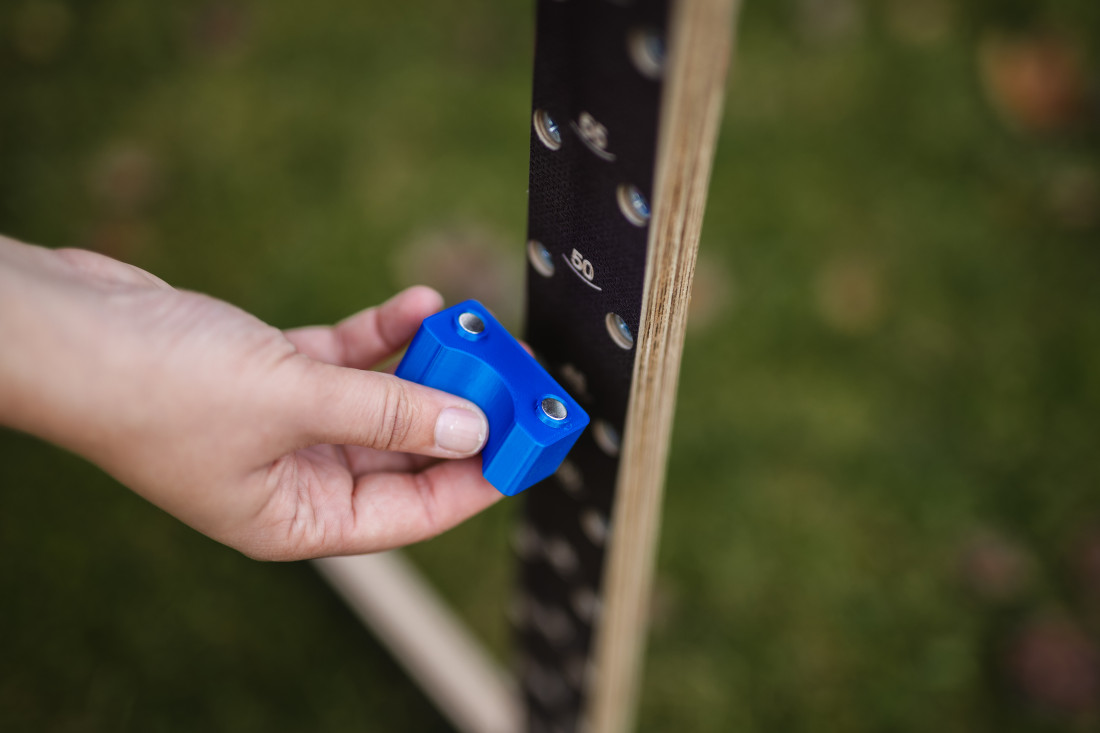 Hopsee Up má praktickou a chytře vymyšlenou skládací konstrukci z voděodolné překližky. Proč je to skvělá zpráva? Snadno ji totiž přenesete kamkoliv budete potřebovat, ať už trénujete v hale nebo na dvorku za domem. Na trvalé venkovní umístění se sice nehodí, ale je velmi skladná, takže vám doma nezabere moc místa.