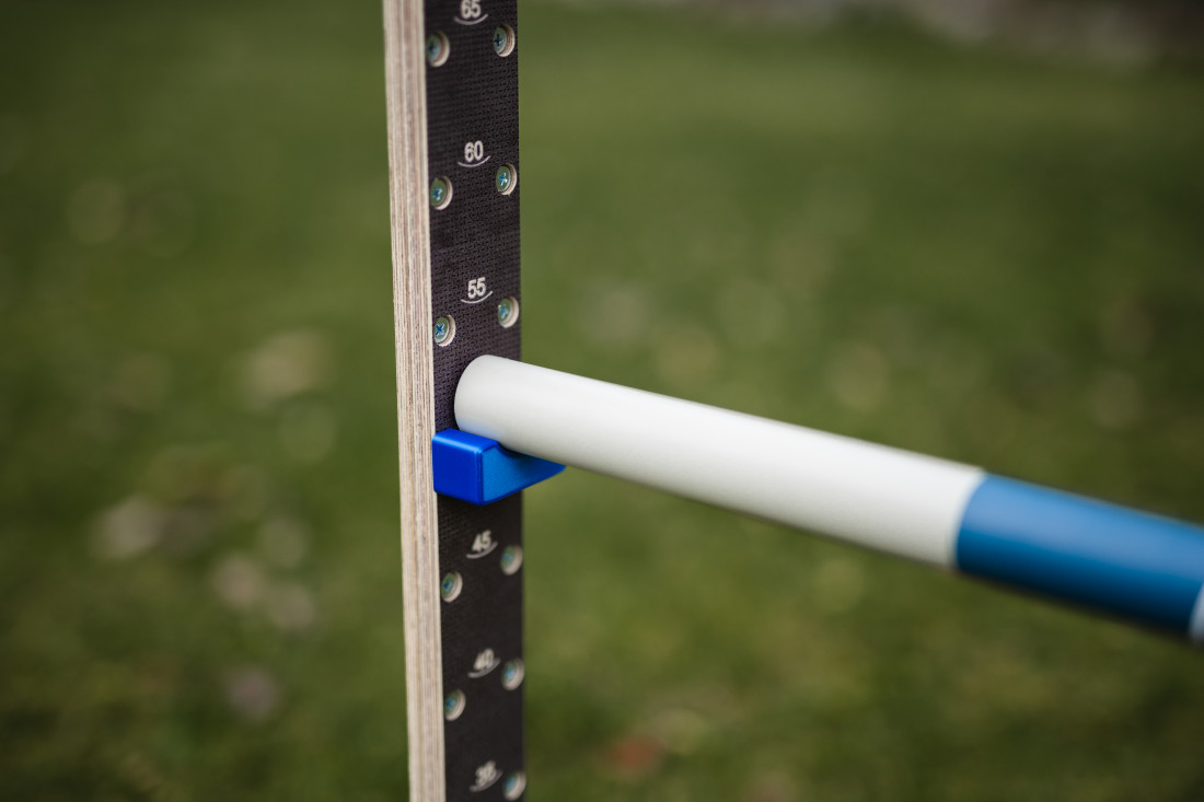 Překážka, přes kterou váš chlupáč bude skákat radostí. Hopsee Up má oproti své předchůdkyni vylepšenou konstrukci, kterou lze lépe složit a přenášet. Kromě toho jsme také zvětšili rozsah stupnice od 10 do 100 cm s rozestupy po 5 cm, aby odpovídala zkušebnímu řádu nejen pro obedience, ale také pro rally obedience. Je vyrobena z voděodolné překližky, takže jí neublíží, ani když ji zapomenete po tréninku na zahradě (ale pozor, není ideální pro trvalé venkovní umístění). Tyčku lze díky magnetickým úchytům shodit, aby do ní pes nenarazil a nezranil se. Tak jdeme na to? Hop!